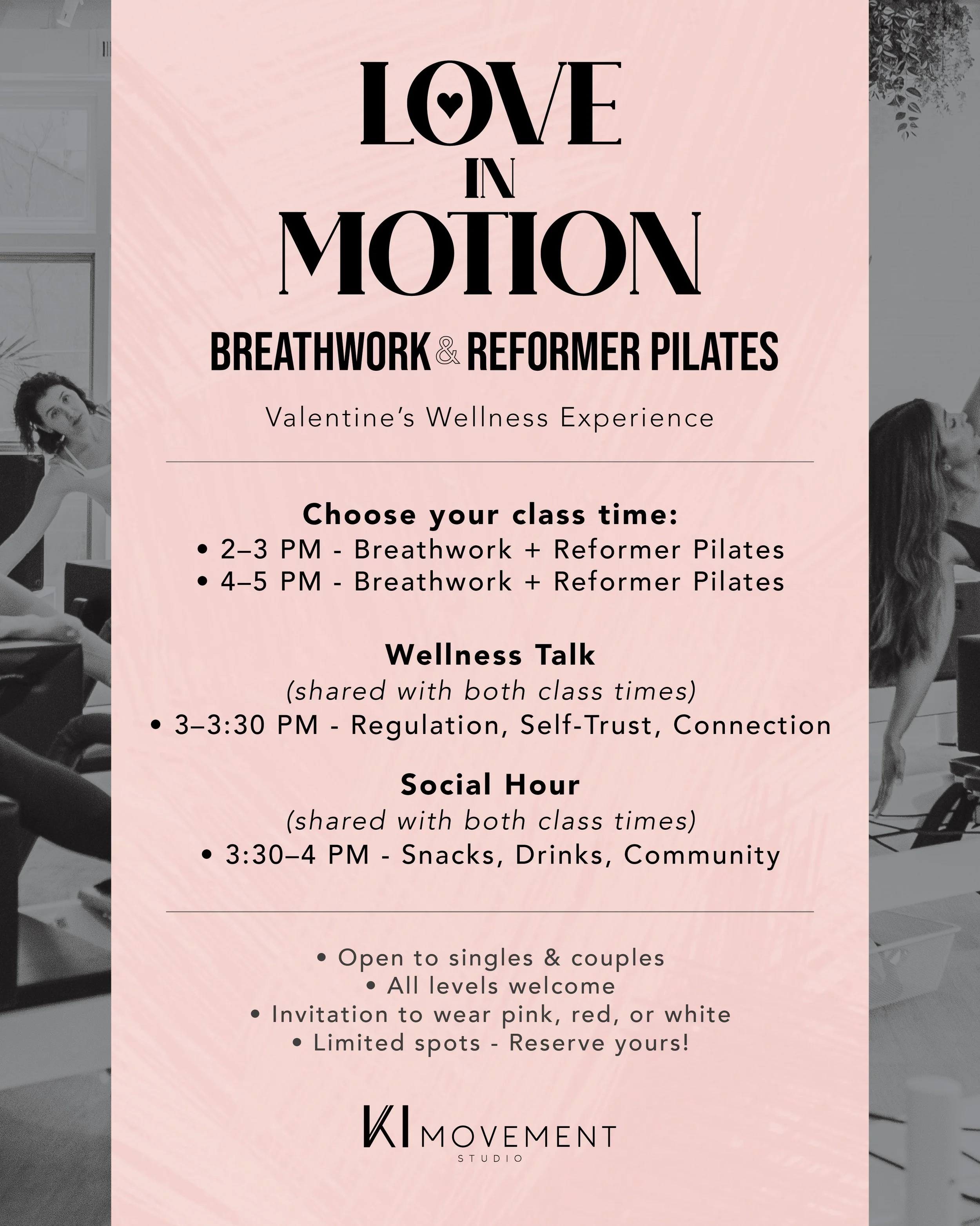 LOVE IN MOTION - BREATHWORK & REFORMER PILATES - VALENTINE’S WELLNESS EVENT